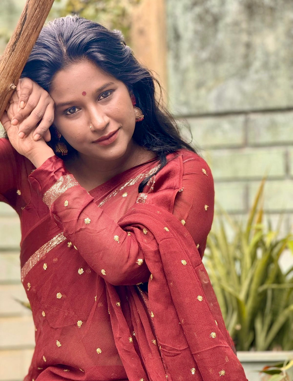 Viscose georgette sarees are lightweight and flowy with a soft, slightly crinkled texture, offering a graceful drape and elegant appearance. Made from semi-synthetic viscose fibers, they combine comfort with a silky sheen, ideal for both casual and festive wear.