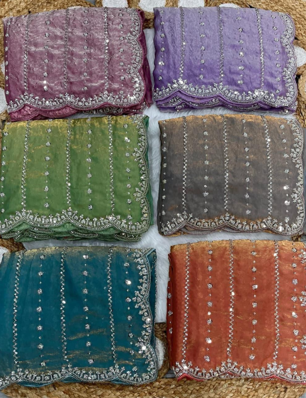 Drape yourself in luxury with this stunning Fendy Space Silk Saree, a perfect fusion of modern design and intricate craftsmanship. The saree shimmers with a soft, elegant sheen, giving it a rich and sophisticated look. The highlight of this piece is the beautiful, delicate hand-worked beadwork that adorns the fabric, creating a subtle yet captivating sparkle.